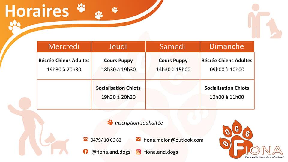 Ces récréations se font dans le but d’habituer vos animaux aux autres chiens, de maintenir des contacts sociaux et d’avoir un contact avec d’autres personnes. Fiona supervise la rencontre tout en répondant à vos questions. Le prix pour la participation est de 10€ par chien.