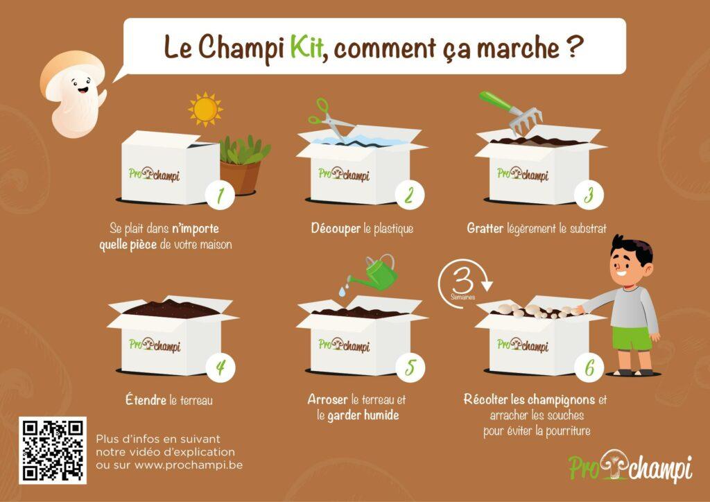 Comme l’an passé, des kits pour cultiver des champignons chez soi seront disponibles à l’achat. Ces kits, faciles à utiliser, permettent de cultiver des champignons frais à domicile. Pour plus d’informations, rendez-vous sur la page Facebook Prochampi.