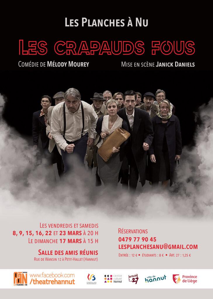 Mais qui sont donc ces « crapauds fous » ? La réponse se révélera au dénouement, dans un spectacle mêlant humour, suspense, émotion et bravoure. Trente rôles, treize comédiens : une fresque captivante qui nous transporte de 1940 à 1990, alliant perspective contemporaine et évocation historique. La pièce, écrite par Mélody Mourey et mise en scène par Janick Daniels, promet une expérience théâtrale inoubliable.