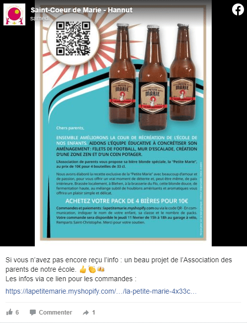 À Hannut, on s’en fiche pas mal du nombre de bulles. Soutenue par l’association des parents d’élèves de l’école de Saint-Coeur de Marie, la brasserie du Flo met en vente leur bière locale, la Petite Marie, afin de soutenir l’établissement scolaire. À 10 € le pack de quatre bouteilles de bières (de 33 cl), l’intégralité des fonds récupérés seront utilisés pour aménager la cour de l’école. Les projets envisagés sont nombreux : l’ajout de filets de football et d’un mur d’escalade ainsi que la création d’une zone zen et d’un coin potager.