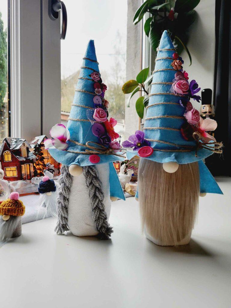 Les gnomes confectionnés par Laurent sont uniques et fabriqués à partir de matériaux recyclés. Bouchons de vin, chaussettes et bouteilles de Perrier de 50 cl deviennent des créatures colorées et personnalisables. Chaque gnome est pensé pour être robuste et esthétique. Les petits personnages se parent de chapeaux en feutrine, de fleurs ou de boutons récupérés, mais aussi de barbes, de tresses et de couleurs variées.